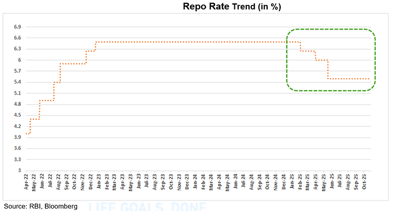 The RBI’s Monetary Policy Committee (MPC) kept the repo rate unchanged at 5.5%, with SDF at 5.25% and MSF/Bank Rate at 5.75%. The stance was retained at neutral, reflecting RBI’s flexibility to act based on growth and inflation trends. The RBI highlighted that the benefits of front-loaded rate cuts (100 bps since Feb’25) and GST reforms are still unfolding, and further moves will depend on evolving data.